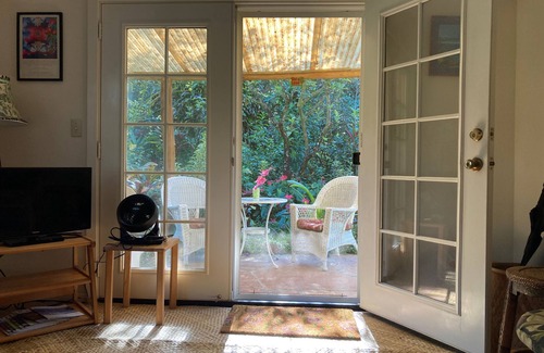 Jade Ohana Is Located In Hawaiian Paradise Park, half way between Keaau and Pahoa. Jade Ohana Is One Bedroom with Queen size bed, and bathroom with tub and shower. There is a Private Entrance And Parking and on ground level in a Two Story Home. There Is A Lovely Patio With Views Of The Garden And Ohia Woodland. The Floors Are Lauhala Mats, (traditionally Used By Polynesian Cultures,) Bamboo, And Tile. The Bedroom, Light And Airy, Has Windows On Two Side With Views To The Gardens. The Bathroom Has Tub/shower, Bathroom Towels, And Beach Towels And Beach Mats. Wi-fi, Satellite Tv, Dvd Player, Cd Player, Hawaiian Music And Books Are Provided. Also Complimentary Coffee And Fresh Local Grown Fruit Are For Guests When They Arrive. The Kitchen Is Equipped With A Full Refrigerator, Microwave, 2 Burner Electric Stove, Toaster Oven, Coffee Pot, Blender, Dishes, And Glasses, Etc. (also Salt And Sugar.)