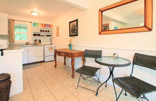 The Fisher's Hana Hale is located across the street from Hana Bay and Waikoloa Beach. We are within walking distance of Hana Bay, Hana town, and Travasa Hotel. Just a short distance down the road is Waianapanapa State Park, Koki and Hamoa beaches. The downstairs features one bedroom and one bathroom, kitchen, living area, screened in lanai with queen bali bed, limited wireless Internet and a Smart TV. For larger parties you can add the upstairs which has one bedroom and one bathroom, living room area, full kitchen and a screened in lanai with a ping pong table. Remember Hana is a rural tropical rainforest so there are insects and rain. But those are the things that make Hana so unique and beautiful. If you need extra space you can also add the upstairs area, please inquire.