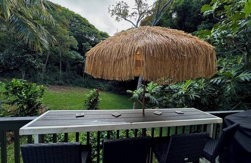 Hawi Hideaway is set back in a quiet cul de sac, surrounded by trees to feel like you are staying in a jungle. Enjoy the sounds of Hawaii with the roosters crowing in the morning and the peaceful sound of the coqui frogs at night.