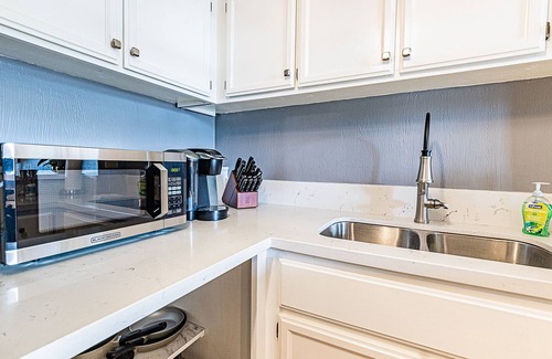 Our elegant, impeccably kept one bedroom condo on the 9th Floor of Hilo Lagoon Centre is the perfect spot to stay for enjoying Hilo town, Hawaii's best kept secret. With views of Mauna Kea and a short walk to the ocean parks on Hilo Bay, you have the best of what Hilo offers. This condo features a spacious one bedroom with a hardwood king sized bed, closet, and en-suite bathroom. The bathroom has a step-in tub with shower, toilet, and sink with vanity mirror. The full kitchen has everything you need to cook in the condo including a full sized range with oven, full sized refrigerator, microwave, Keurig coffee maker, rice cooker, InstaPot, panini press, and so much more. Sit at our modern bar and sample island brews in our elegant glassware. The living room has a comfortable sofa and side chair for enjoying entertainment on the flat screen TV with Free Wi-Fi and basic cable channels. Our unit has two small balconies for enjoying Hilo and mountain views. The condo is fully airconditioned with two temperature control units.