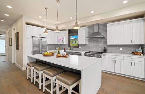 • Full gourmet kitchen with stainless steel appliances and kitchen island dining table