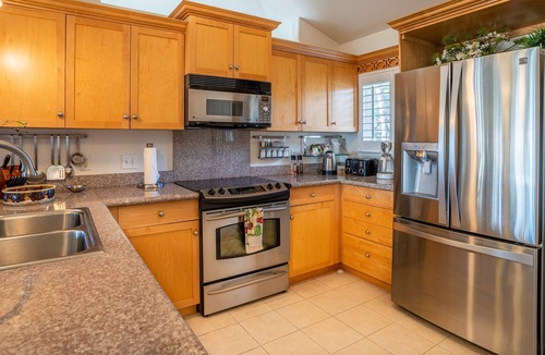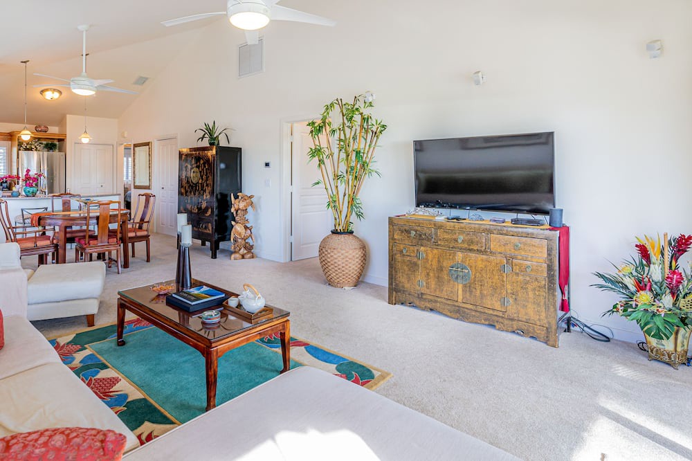This nicely decorated and upgraded Ocean View home in the gated community of Kai Lani was used as the Owner's Vacation Home and not rented until now. The home has many custom built-in's in the bedrooms, new carpeting and upgraded Stainless appliances. The TV's have been recently upgraded to new large screen Smart TVs for your evening entertainment. There is High Speed wireless Internet service provided by Spectrum with advertised speeds of 400 Mbps so you can work, play games and/or stream your favorite content. You sit on your lanai and watch some of the most spectacular sunsets you'll ever see! Better yet, grab your favorite beverage, maybe some snacks and take the short stroll to the secluded cove and beach in front of Kai Lani and watch the sun set while sitting under the Banyan Tree.