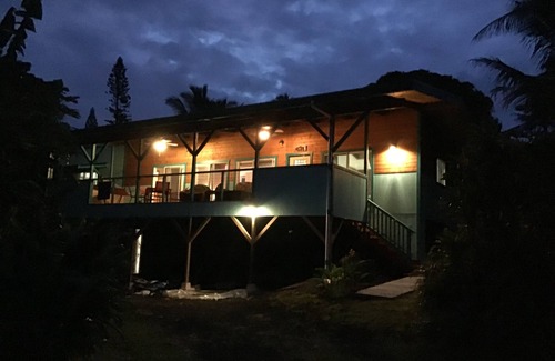 New (2018) 2 bedroom house with spectacular ocean view and huge 500 square feet (45 m2) lanai (terrace) to enjoy it from. Pleasant 5 minute walk to clothing-optional Kehena Beach. Large windows let you see and hear the ocean from every room.